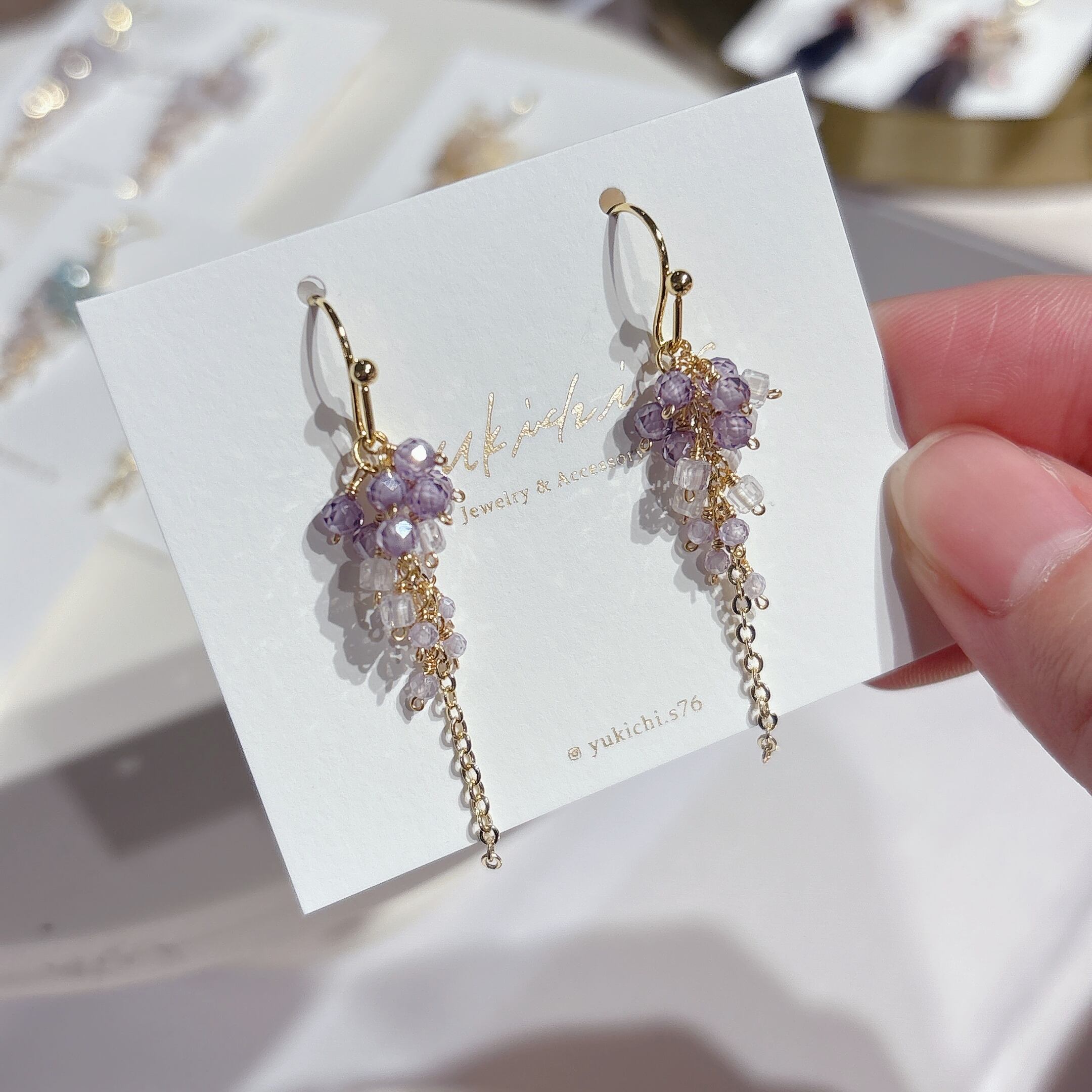 藤色のキュービックジルコニア(cz)を使用したシャンデリアピアスです✨